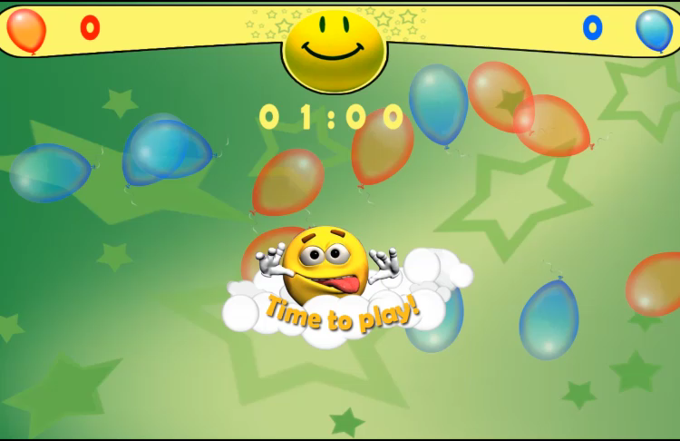 界面中会不断飞来蓝色和红色的气球,当它们被踩中后,气球就会变成各种可爱的表情。你有一分钟的时间,可以和小伙伴分别负责一种颜色,PK 一下,看谁踩中的多。界面上方会分别记录红、蓝两色的得分。